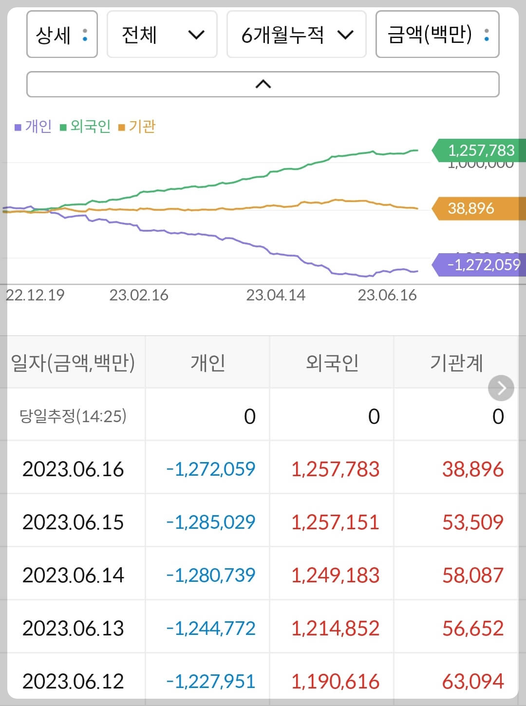 - 개인 1.27조 매도, 외국인 1.25조 매수, 기관 388억 매수