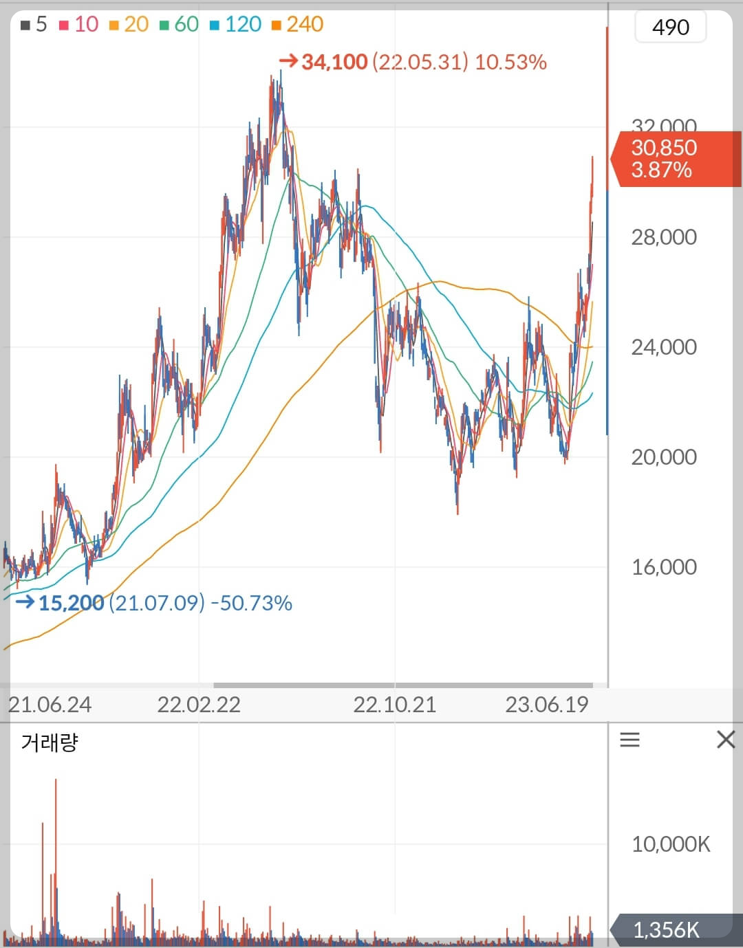 - 최근 일일 거래대금 300억 이상 양호한 거래량 유지 중