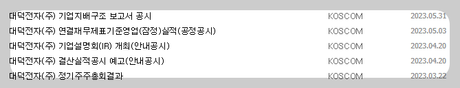 1) 종목명 : 대덕전자