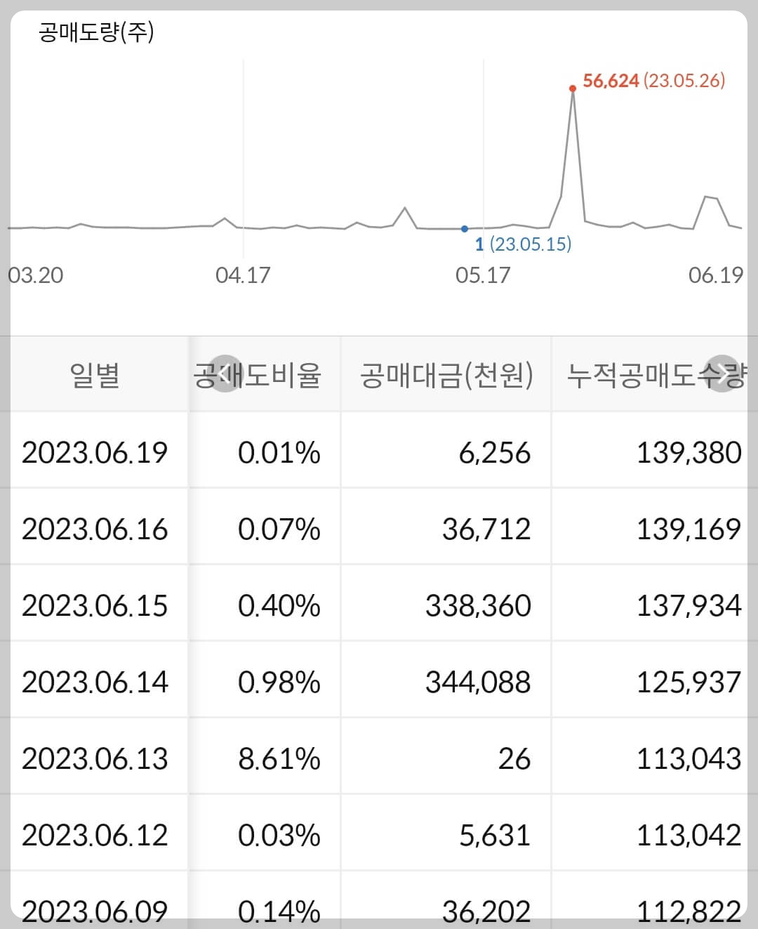 - 누적 공매도 금액은 없습니다.