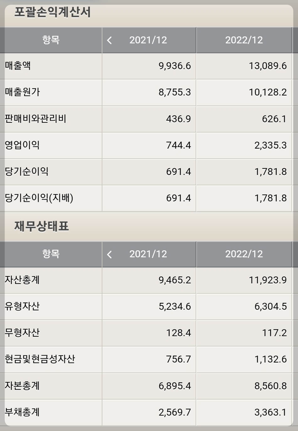 따라서 AI시대가 개화함에 따라 점점 고성능 비메모리 반도체 수요는 증가할 것이며 수용할 수 있는 기판인 FCBGA의 매출도 증가할 것이라는 기대감이 높아지고 있습니다. 하지만 당장 대덕전자의 올해 실적은 기대하기 어렵습니다. 국내 메모리 메이커인 삼성전자와 하이닉스가 높은 재고 수준 정상화를 위해 감산을 선택했고 메모리 기판 실적이 현저하게 감소했기 때문입니다. 2022년 기준 대덕전자의 메모리/비메모리 매출 비중은 58%/42%로 메모리 매출이 더 높다는 점 참고하시기 바랍니다. 수익성은 비메모리 주요 기판인 FCBGA가 압도적으로 가장 좋기 때문에 FCBGA의 매출 비중이 영업이익률에 직결되고 있습니다.