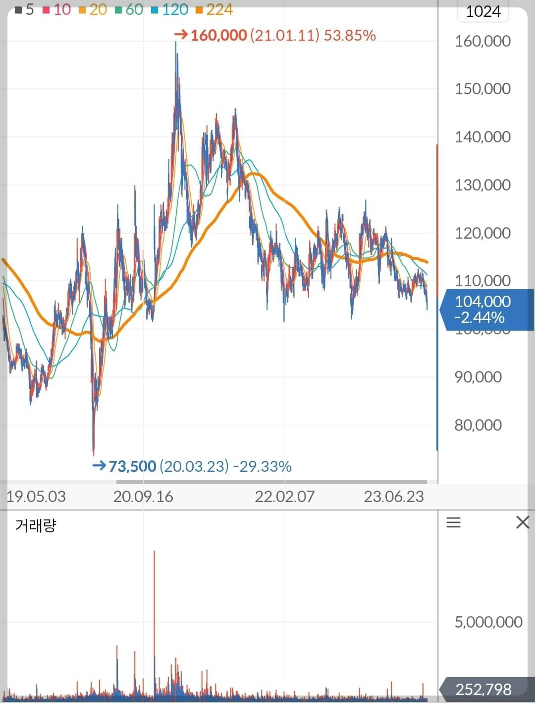 - '20년 3월 코로나 팬데믹 선언 ▼ 주가 73,000원까지 하락