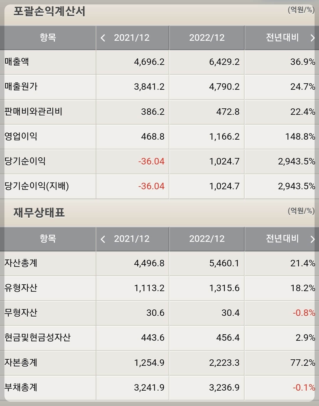 이수페타시스는 Multi Layer Board인 MLB를 전문적으로 생산하는 기업으로 18층 이상의 고다층 기판을 글로벌 해외 고객사에 납품하고 있습니다. 글로벌 기업인 Google, Facebook 등을 주요 고객사로 확보하고 있기 때문에 환율이 높았던 2022년에 환차익으로 영업이익이 8%에서 18%까지 급상승했습니다.