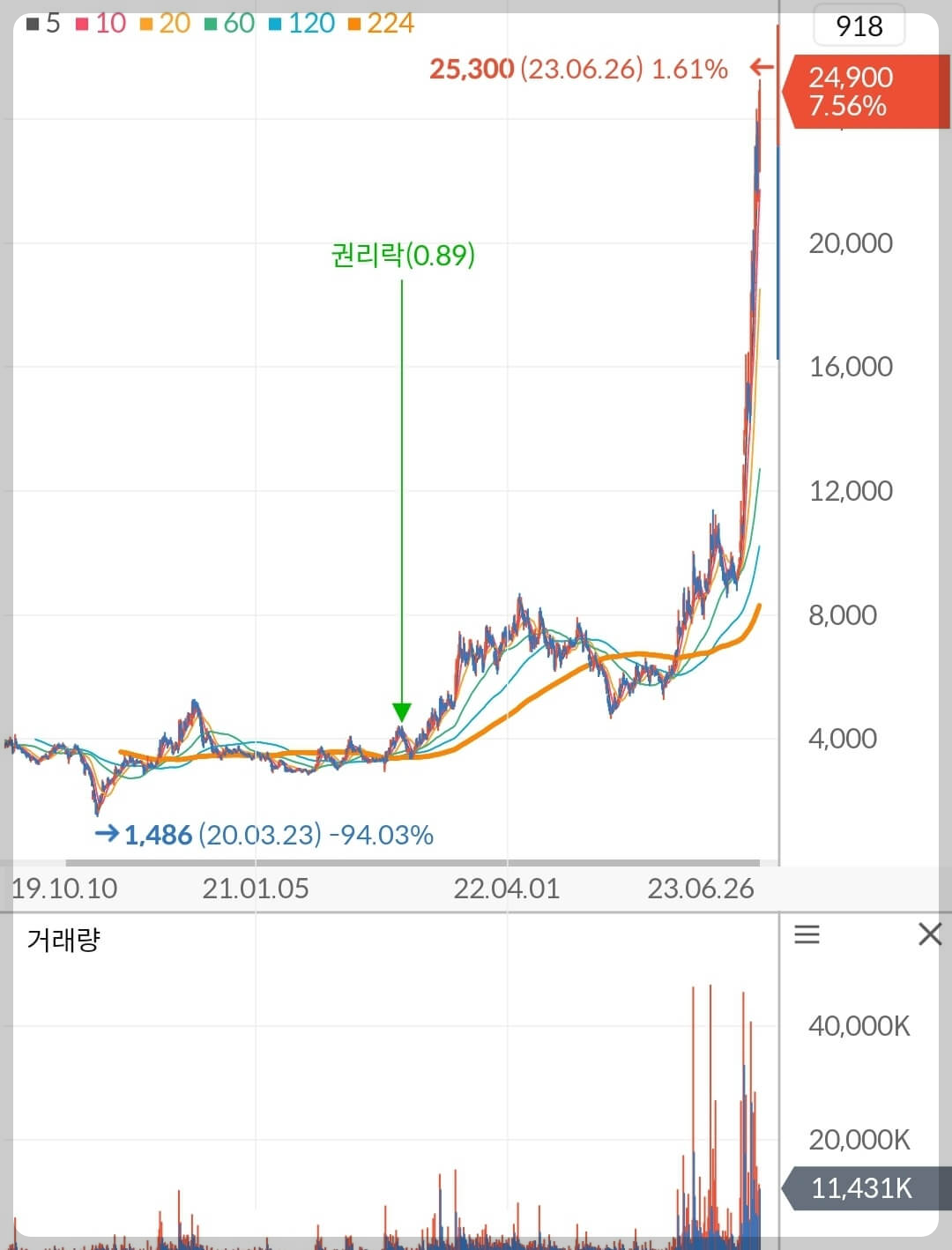- 과거 소외주였으나 하루 4,000만 주 이상의 거래량을 다수 발생시키는 뜨거운 종목이 되었음