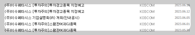 1) 투자 전 반드시 확인해야 될 공시사항은 없습니다.