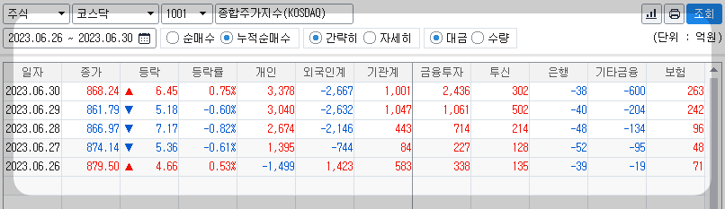 주식시장 주간 수급 분석(23년도 6월 4주차)