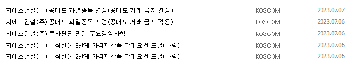- 공매도 과열종목 : 공매도 세력들은 이번 사태가 GS건설에게 치명타가 될 것이라고 예상하며 하락을 주도하고 있음