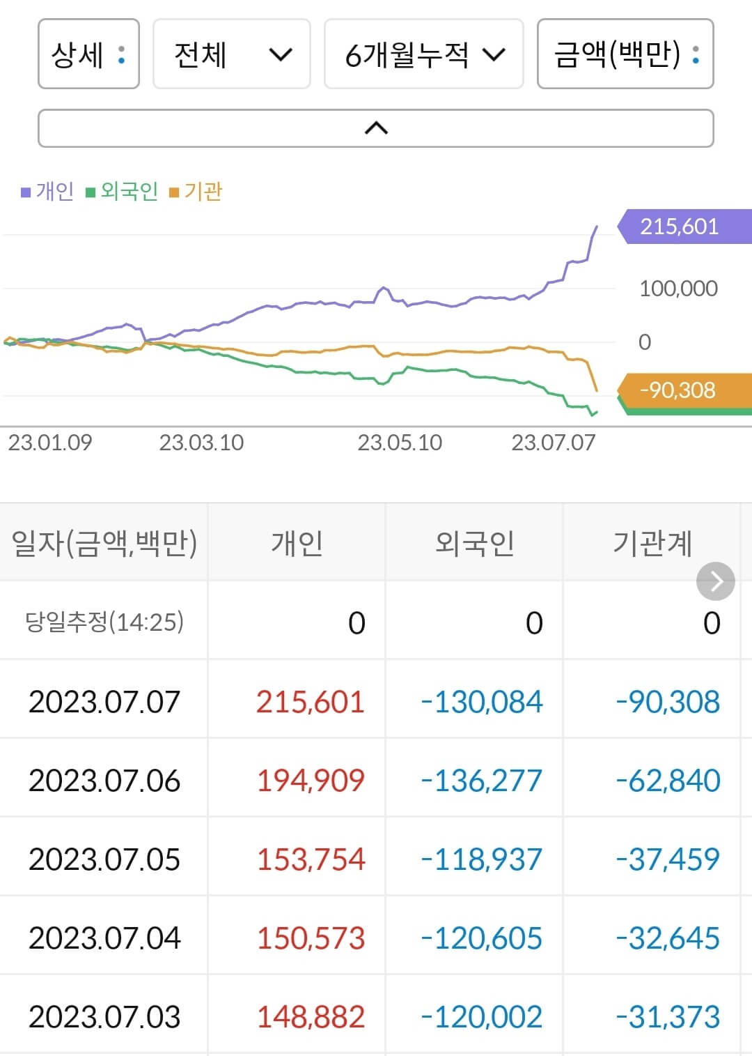 - 개인 2,156억 매수, 외국인 1,300억 매도, 기관 903억 매도