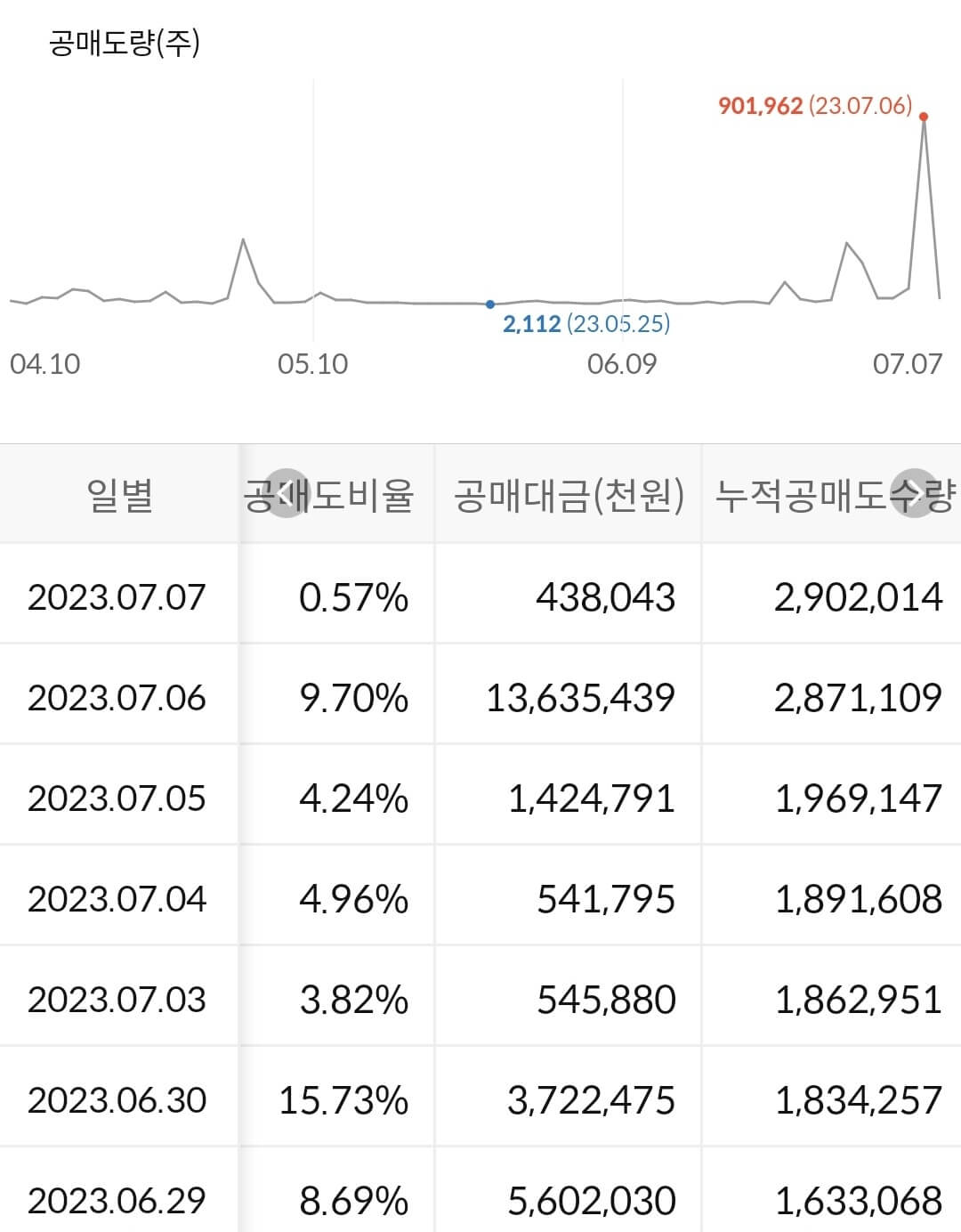 2) 공매도 누적 수급