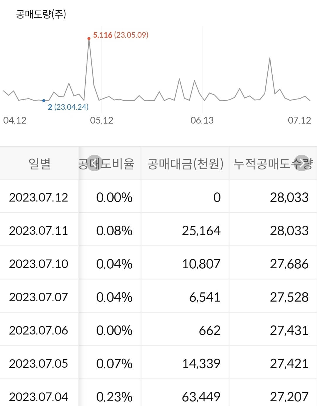 - 누적 공매도 금액은 없습니다.