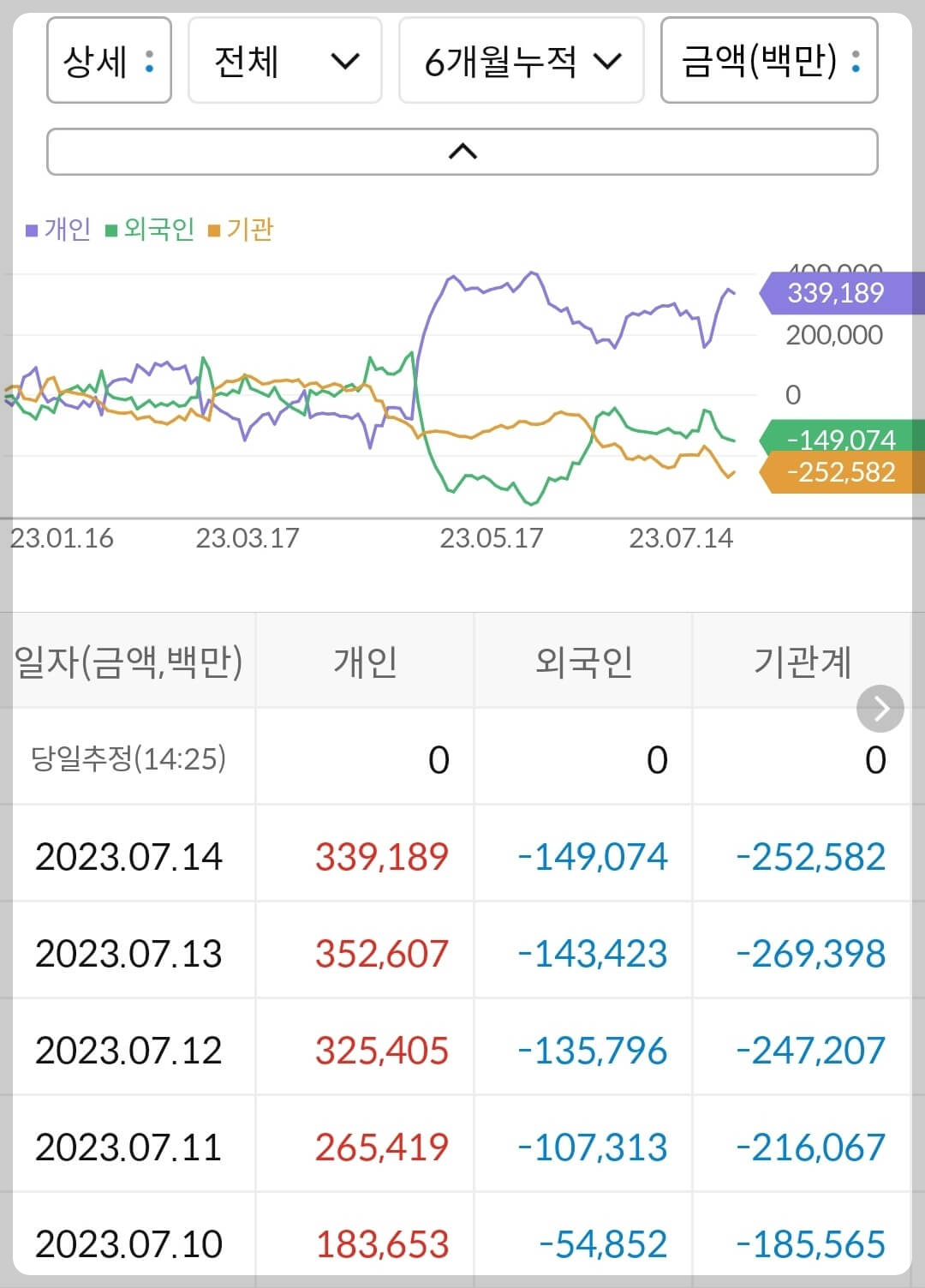2) 공매도 누적 수급