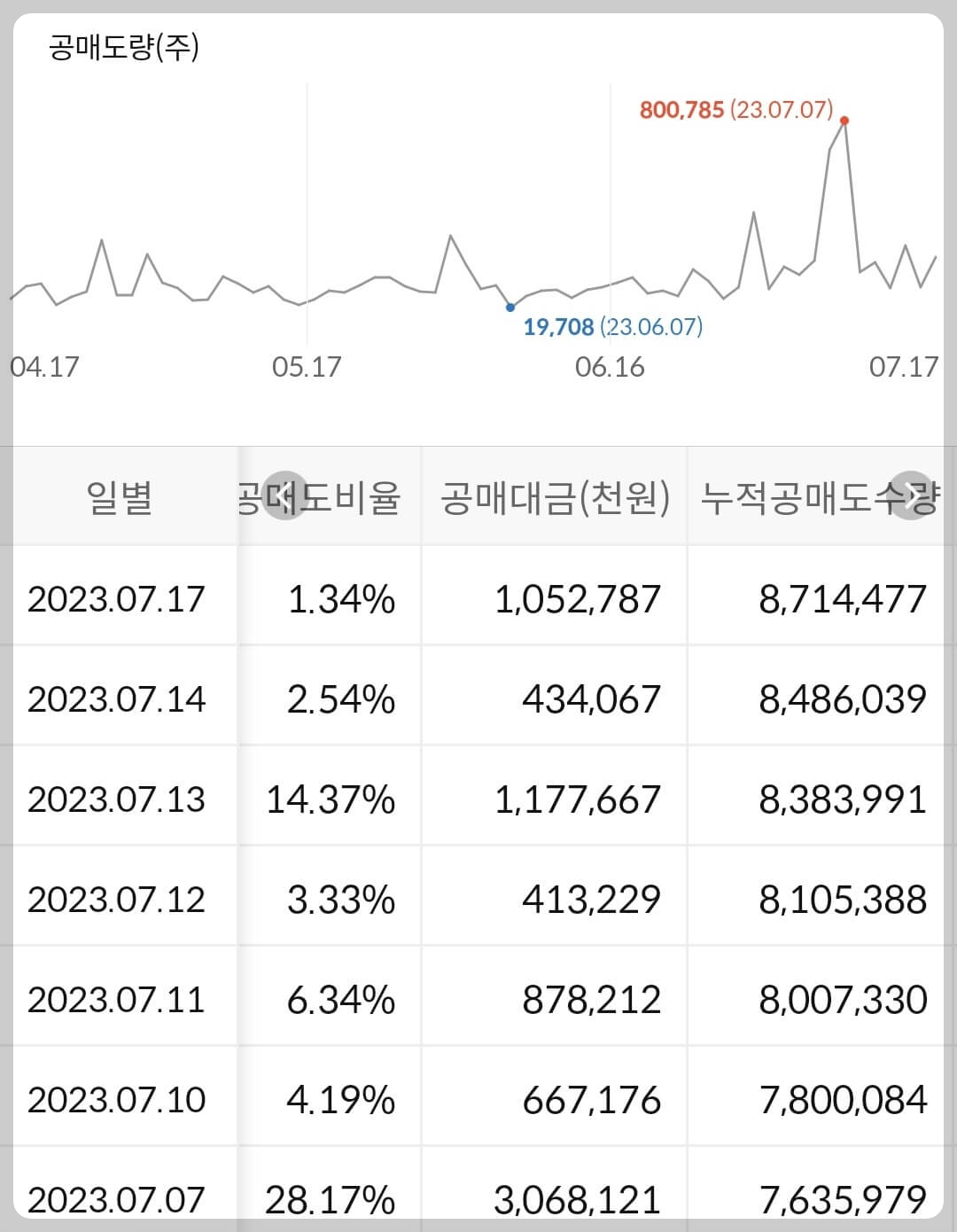 2) 공매도 누적 수급