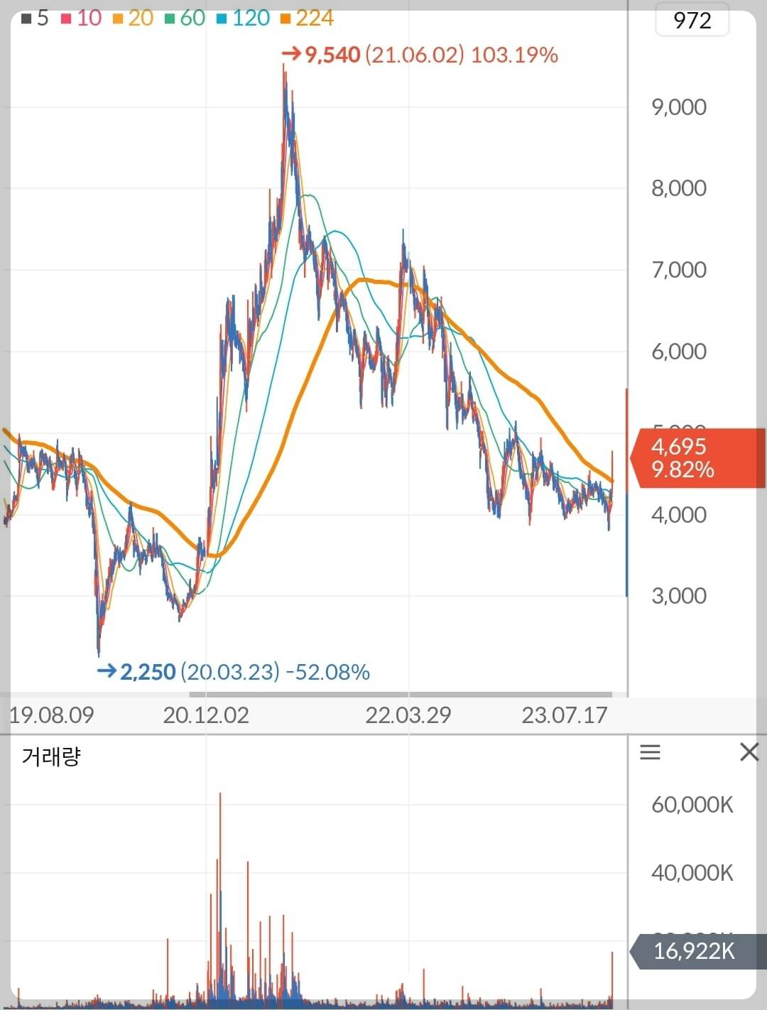 - 매각 리스크 및 글로벌 지수 조정기 진입 ▼ 주가 4,000원대 하락