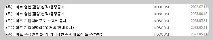 1) 종목명 : 이마트