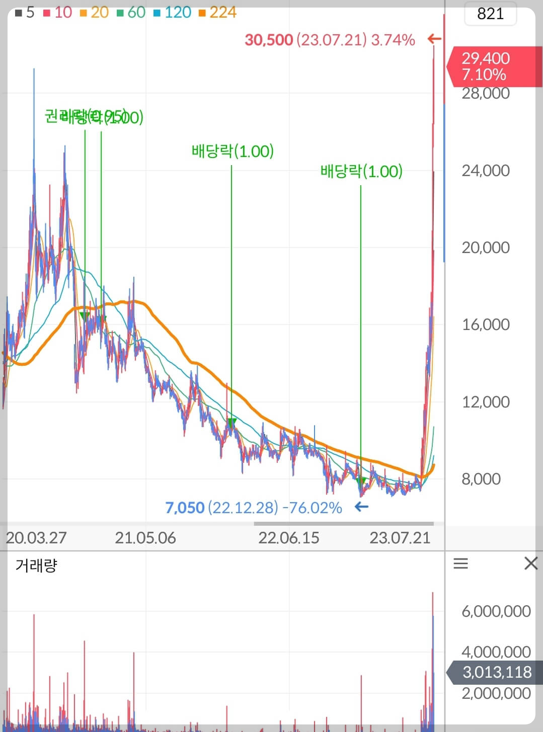 이미 빅파마들에게 기술이전 계약을 성사시킨 바이오텍(오스코텍, 레고켐바이오, 알테오젠 등) 사례를 보면 이렇게 Term Sheet 수령 단계에서 주가를 폭발시키는 경우는 흔하지 않습니다. 아마도 매집세력들이 현재 시장에 GLP-1 비만치료제 테마가 강하게 형성되었기에 Term Sheet 만으로도 충분히 개인 투자자들을 끌어들일 수 있다고 판단했을 겁니다.