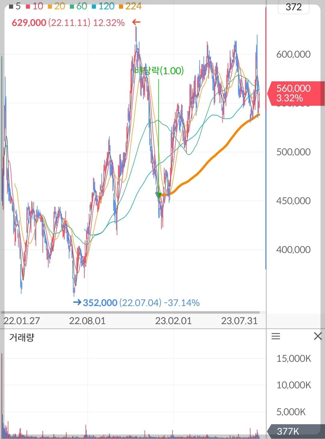 - 2차 전지 섹터 수급 유입 및 23년도 성장 전망▲ 주가 560,000원대 상승