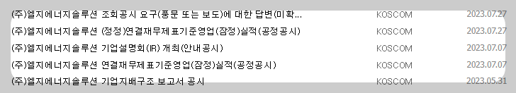 - 누적 공매도 금액은 2.5조로 추산되며 이는 LG에너지솔루션 시총 130조 대비 2%에 해당