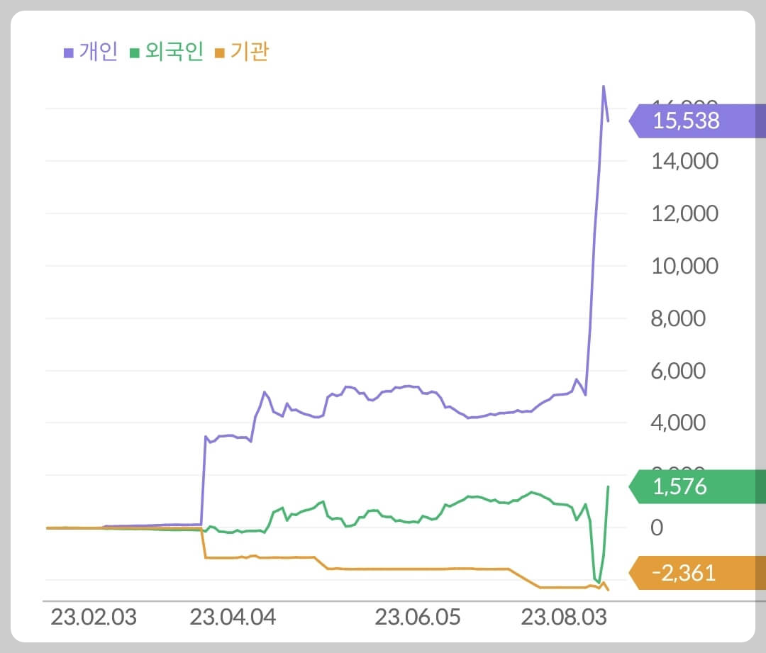 - 개인 155억 매수, 외국인 15억 매수, 기관 23억 매도