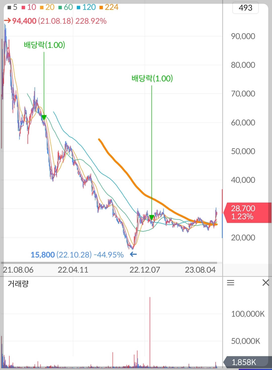 (저는 여러분들의 매매에 너무 과도한 영향을 끼치면 안 되기 때문에 아무리 위험한 종목, 작전주라도 보통 경고만 합니다. 하지만 카카오는 주주분들의 과도한 손실이 너무 불 보듯 뻔히 보였기에 금기를 깨고 적극적으로 매도를 말씀드렸던 겁니다.)