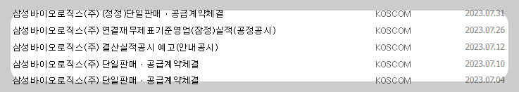 1) 종목명 : 삼성바이오로직스