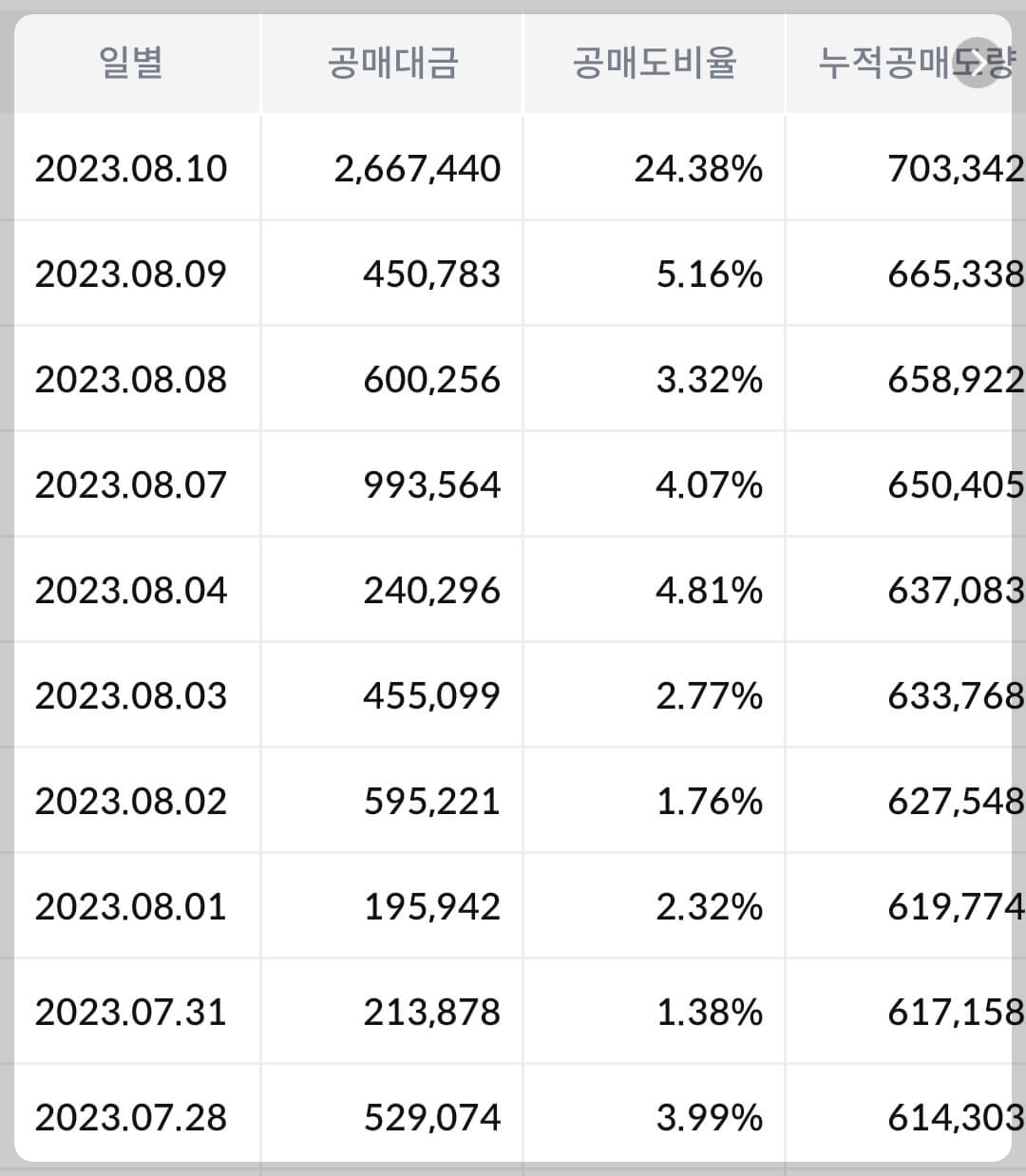 2) 공매도 누적 수급