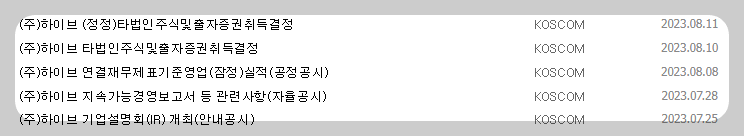 1) 종목명 : 하이브