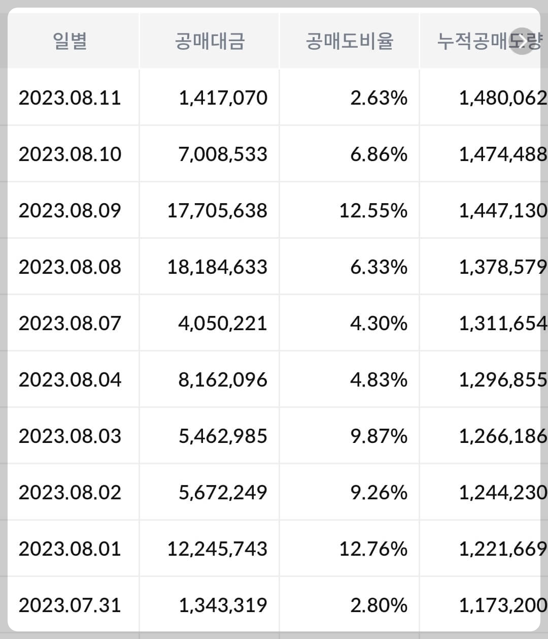 2) 공매도 누적 수급