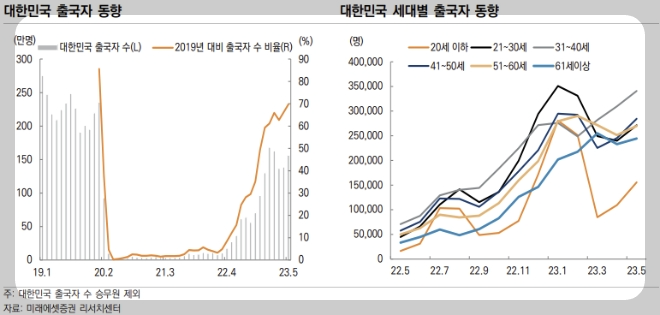 다만 해외여행객수가 빠르게 회복되고 있다는 점은 통계상 확인되고 있기에 일단은 예약률 증가추이를 지켜봐야 할 것 같습니다.