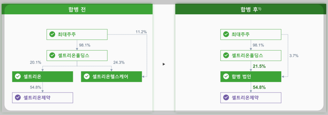 - 합병방식 : 셀트리온이 셀트리온헬스케어 흡수 합병