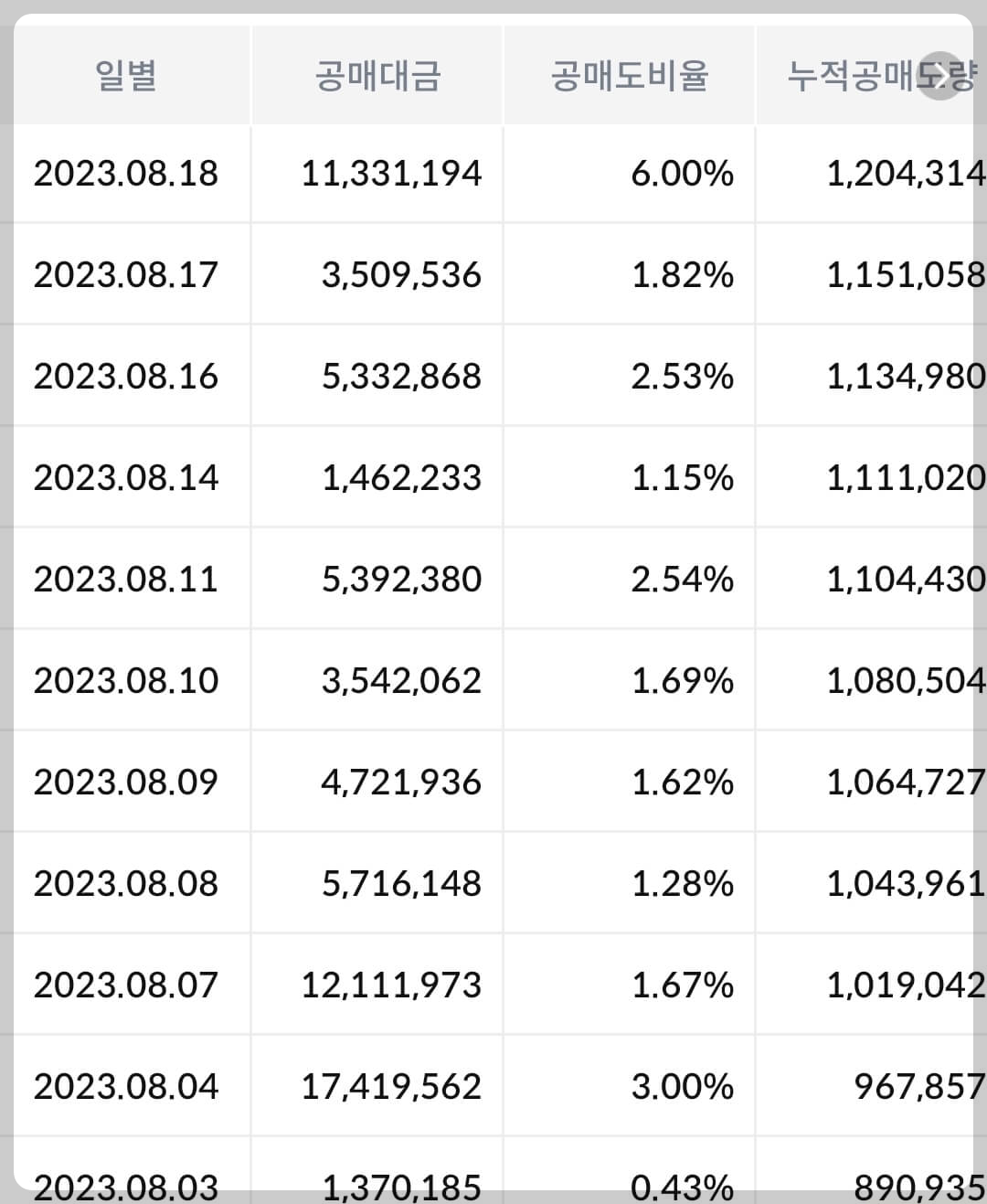 2) 공매도 누적 수급