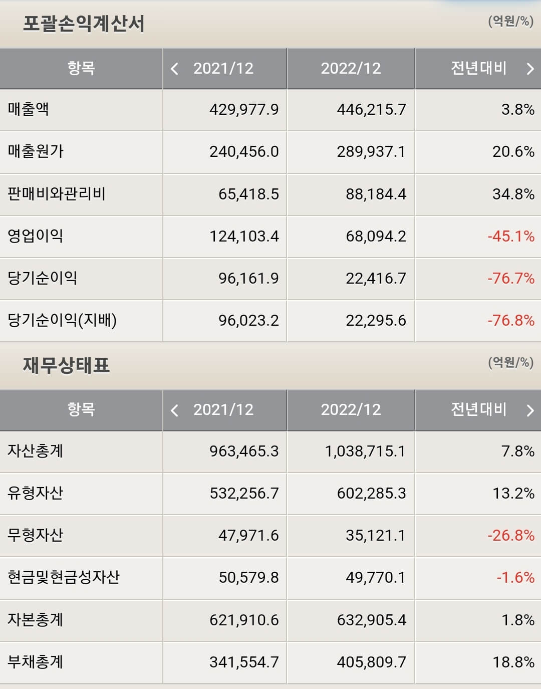 연초만해도 SK하이닉스의 예상 영업적자는 10조 규모였지만 AI 산업의 개화가 DRAM 수요를 다시 끌어올려 예상적자 8조 규모까지 낮추는데 성공했습니다. 지금의 흐름이라면 2024년 충분히 흑자전환이 가능할 것으로 판단되기에 SK하이닉스의 재무 부문 종합등급은 B등급으로 평가하겠습니다.