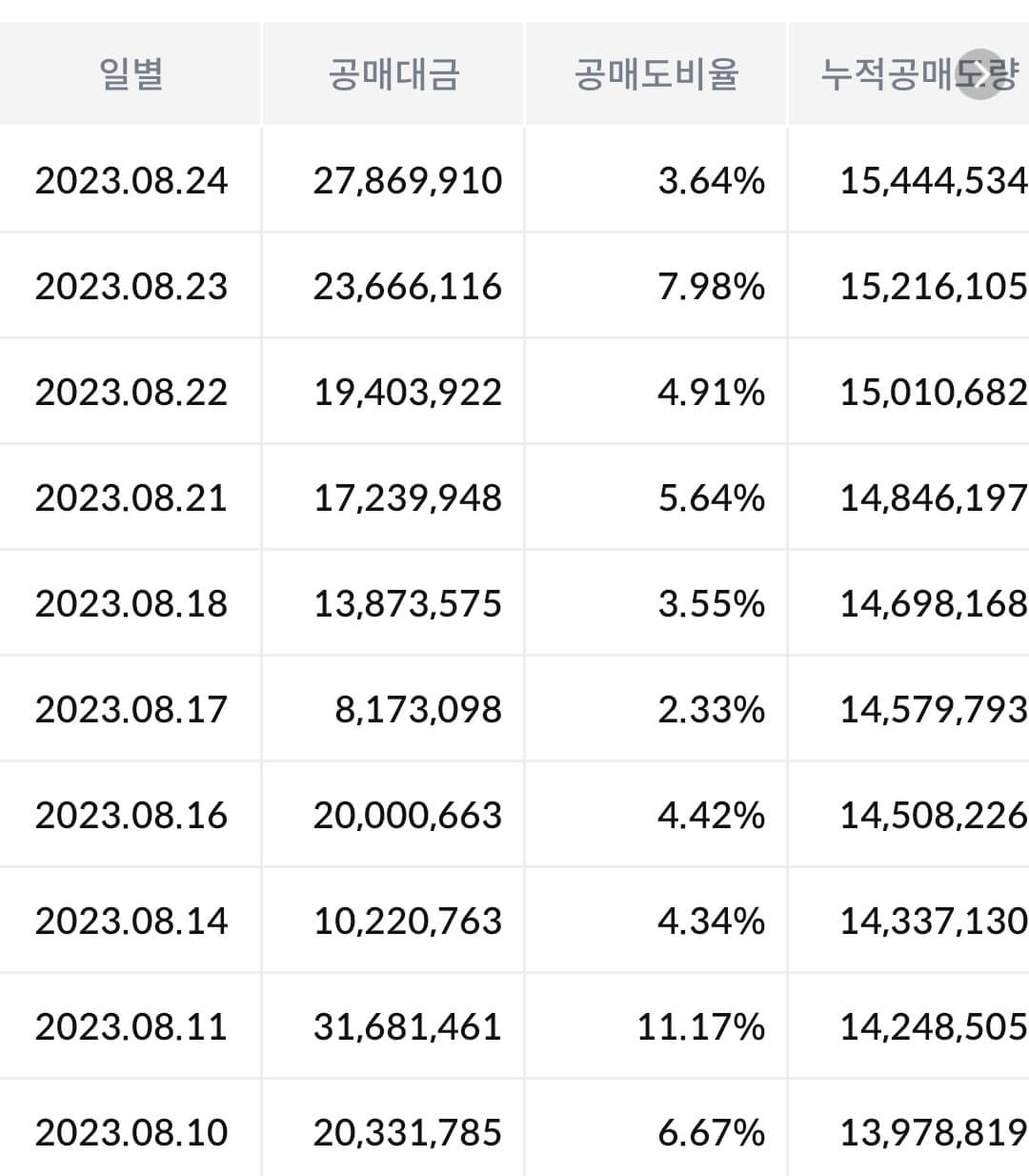 1) 적지 않은 일일 공매도 수급은 주가에 부담