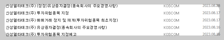 1) 종목명 : 신성델타테크
