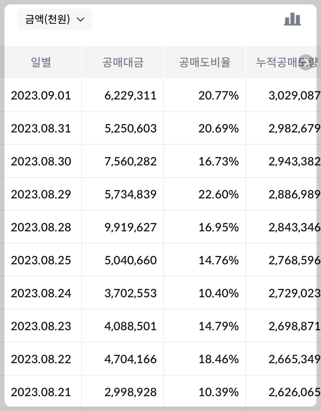 - 누적 공매도 금액은 3,000억 원으로 추산되며 이는 아모레퍼시픽 시총 7.8조 대비 3.8%에 해당