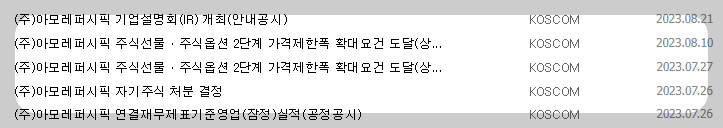 1) 종목명 : 아모레퍼시픽
