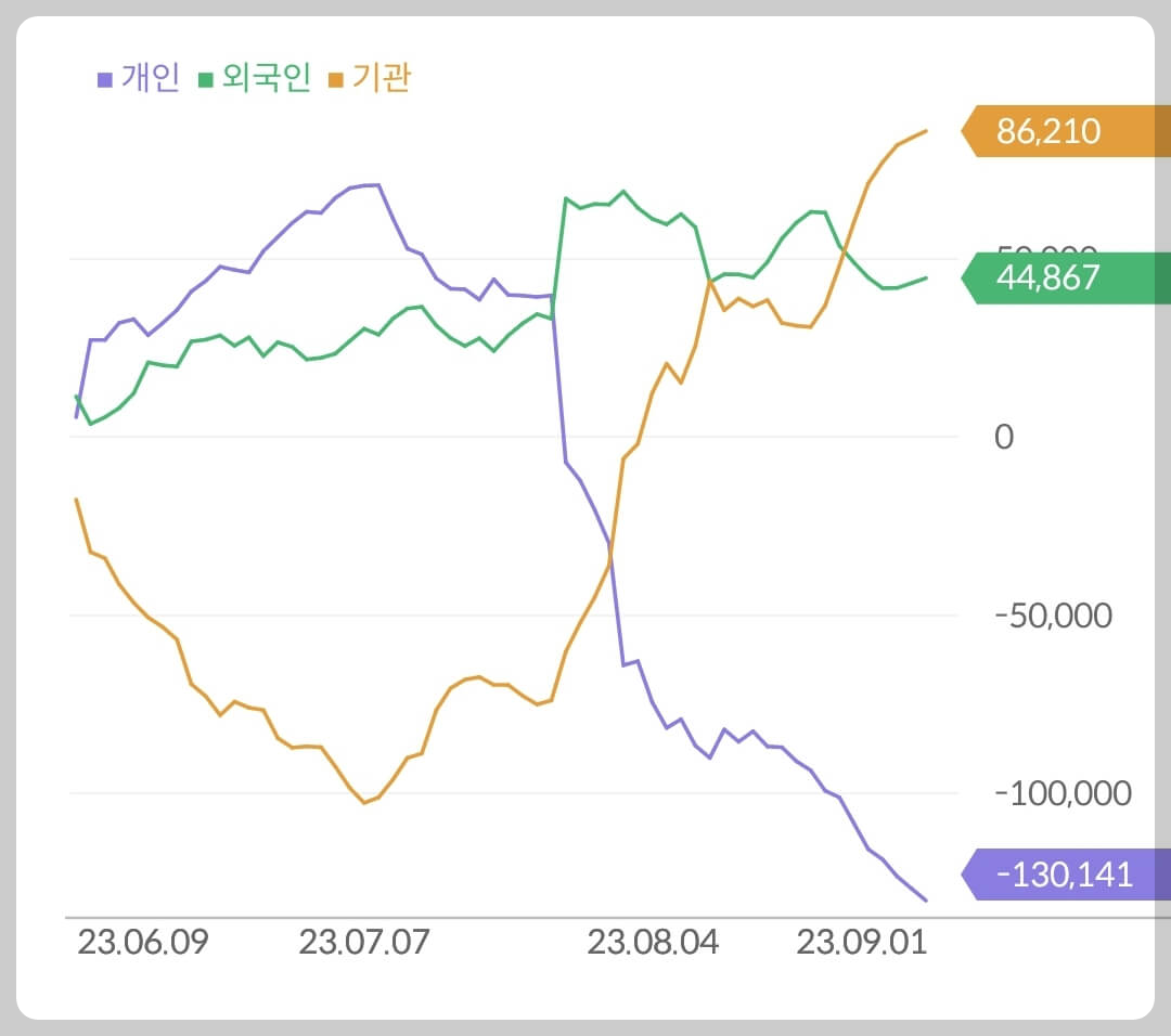 - 개인 1,301억 매도, 외국인 448억 매수, 기관 862억 매수