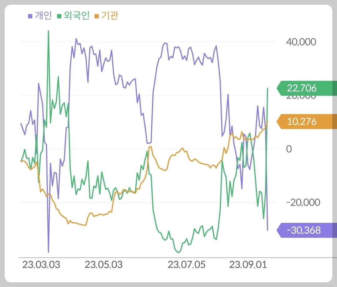 - 개인 303억 매도, 외국인 227억 매수, 기관 102억 매수