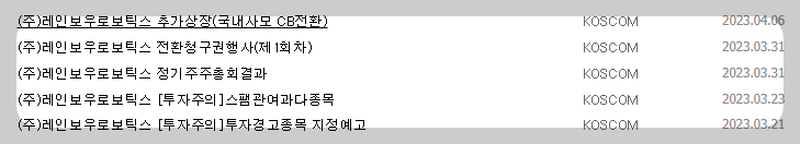 - 누적 공매도 금액은 3,000억 원으로 추산되며 이는 레인보우로보틱스 시총 3조 대비 10%에 해당