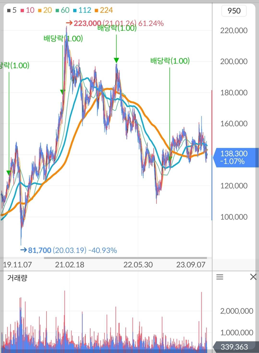 - 20년 3월 코로나 팬데믹 선언 ▼ 주가 81,700원까지 하락