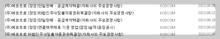 1) 종목명 : 에코프로