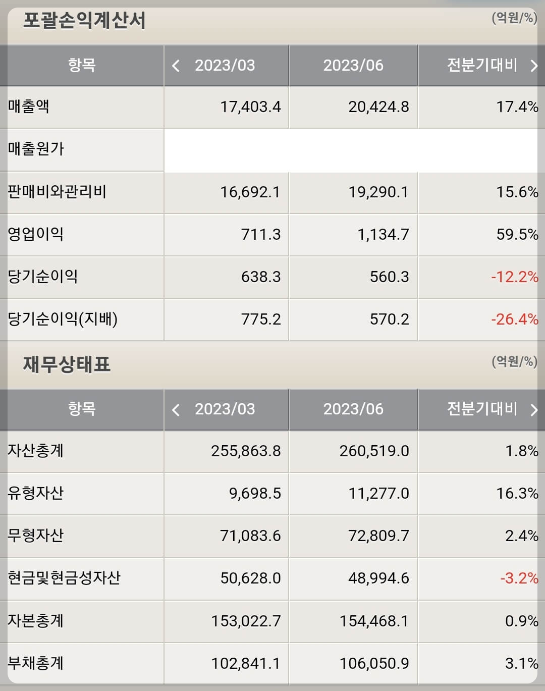 - 성장 둔화 및 무분별한 물적분할로 시장 신뢰 상실 ▼ 주가 43,000원대 하락
