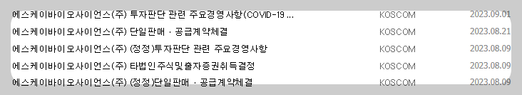 그나마 기대할 수 있는 건 SK바이오사이언스의 자체 백신인 독감, 수두, 장티푸스 등 12개국에서 인허가를 받은 상황이기에 필수예방접종으로 선정만 된다면 장기적이고 안정적인 매출처를 확보하게 될 것이지만 그 가능성은 전혀 높아 보이지 않습니다.