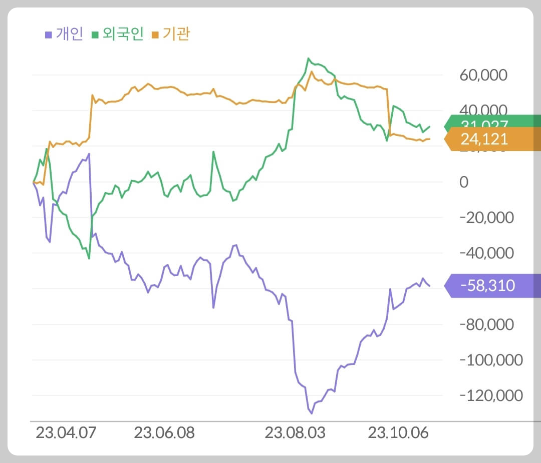 - 개인 583억 매도, 외국인 310억 매수, 기관 241억 매수