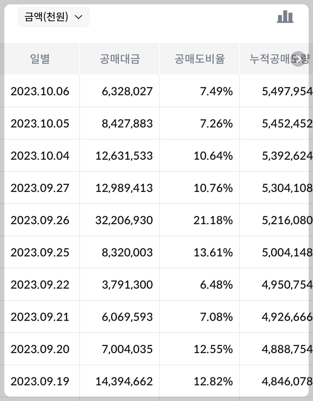1) 매우 큰 규모의 공격적인 일일 공매도 수급