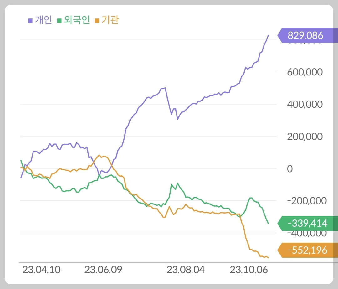 - 개인 투자자들에게 매우 인기있는 종목으로 높은 거래량 유지중