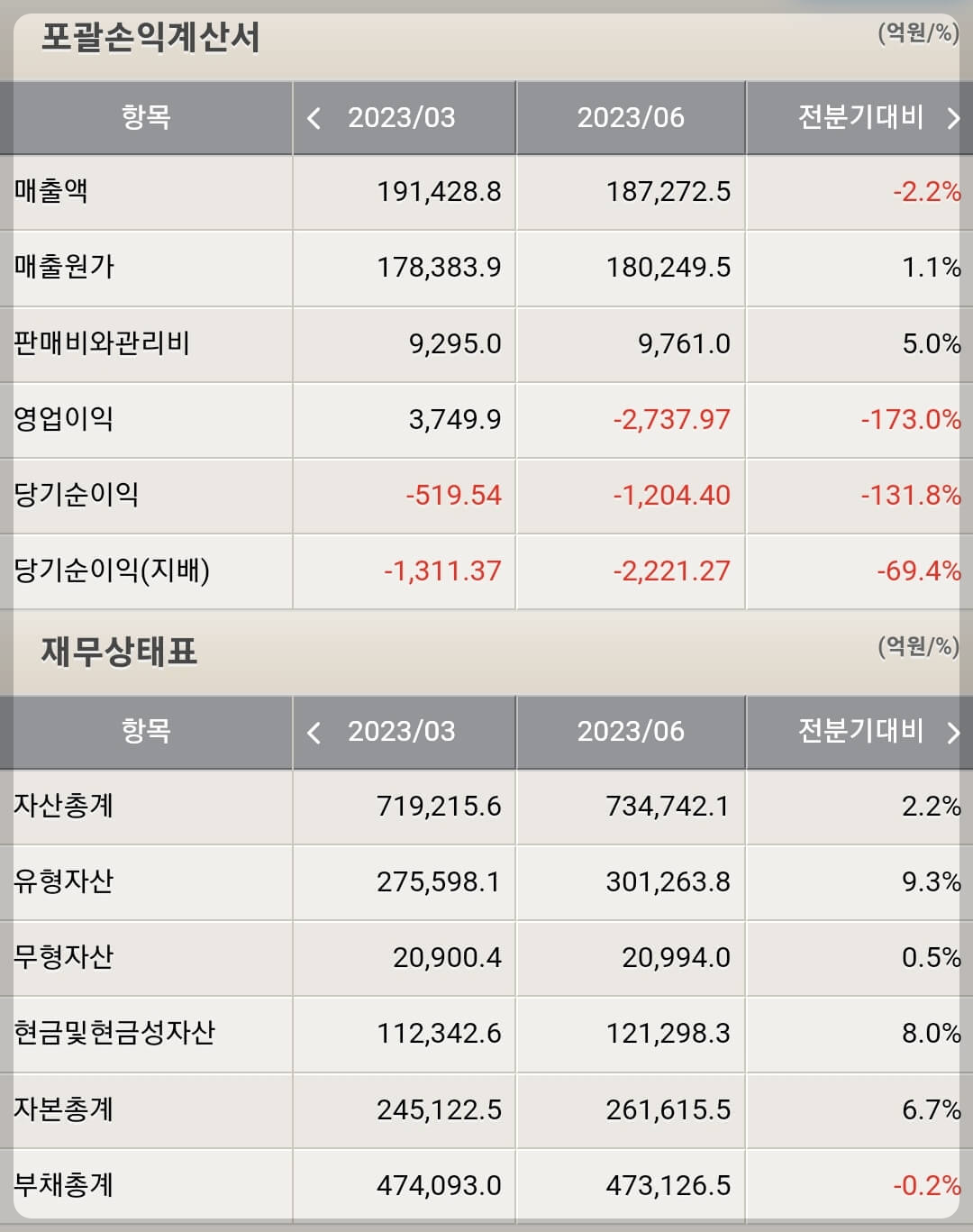 4) 여전히 2차전지 수율 문제를 해결하지 못해 대규모 적자 기록중