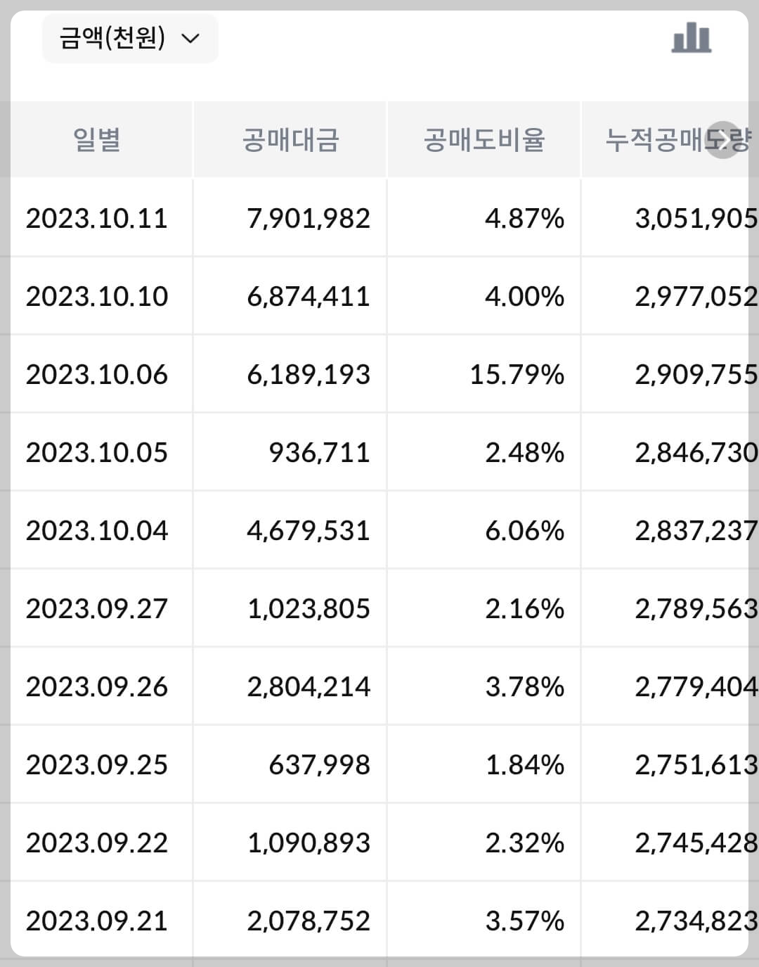 2) 공매도 누적 수급