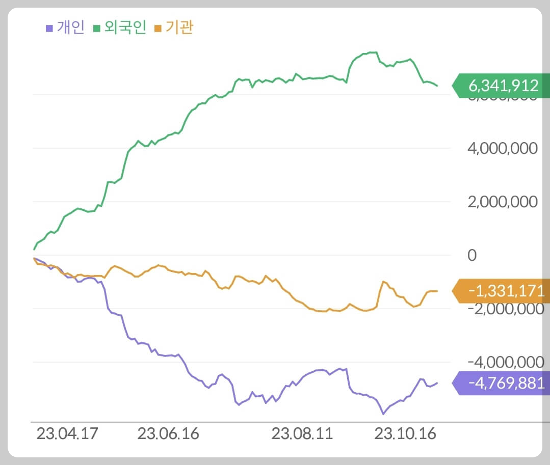 - 개인 5조 매도, 외국인 6.3조 매수, 기관 1.3조 매도