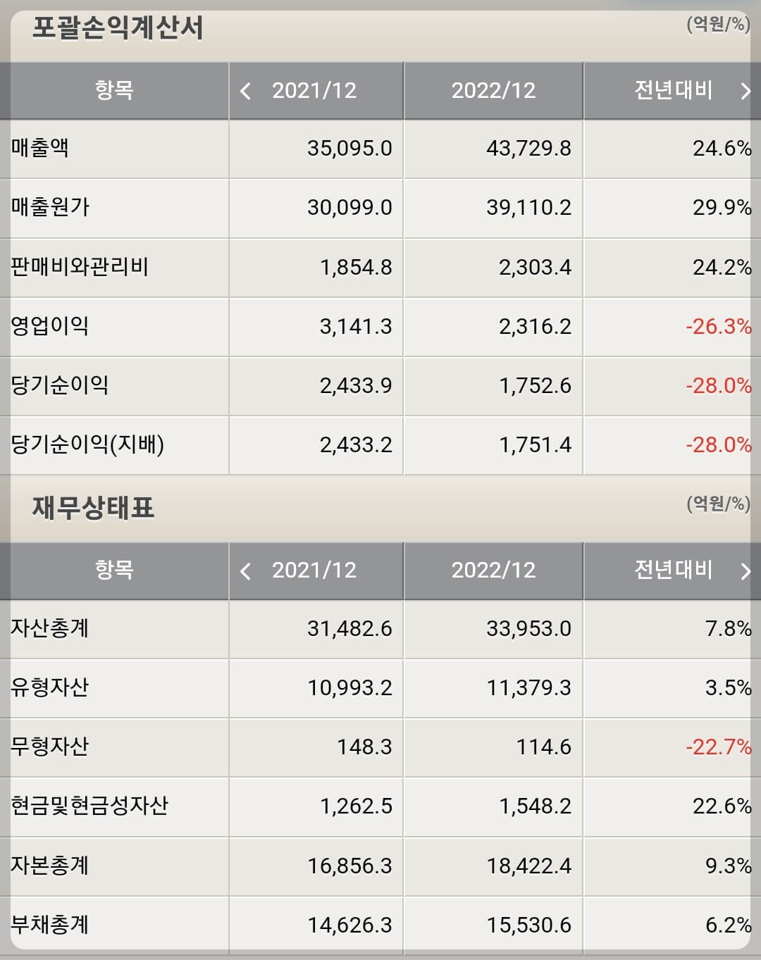 풍산의 영업이익 중 70%는 방산 부문에서 창출되며 특히 수출이 중요한 비중을 차지하고 있는데 지금 현재 국제 정세가 풍산의 수출을 기반으로 한 구조적인 성장에 매우 우호적으로 흘러가고 있다는 점을 말씀드리고 싶습니다. 따라서 풍산의 재무 부문 종합등급은 B등급으로 평가하겠습니다.