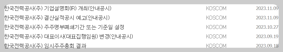 1) 종목명 : 한국전력
